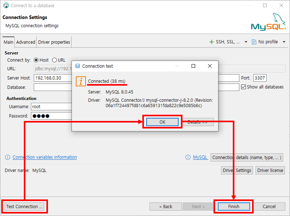 Tip: Docker MySQL을 자주 재시작하거나 여러 환경에서 접속할 경우, JDBC URL 옵션을 추가하거나 사용자 인증 방식을 mysql_native_password로 통일하는 것이 편리합니다.
