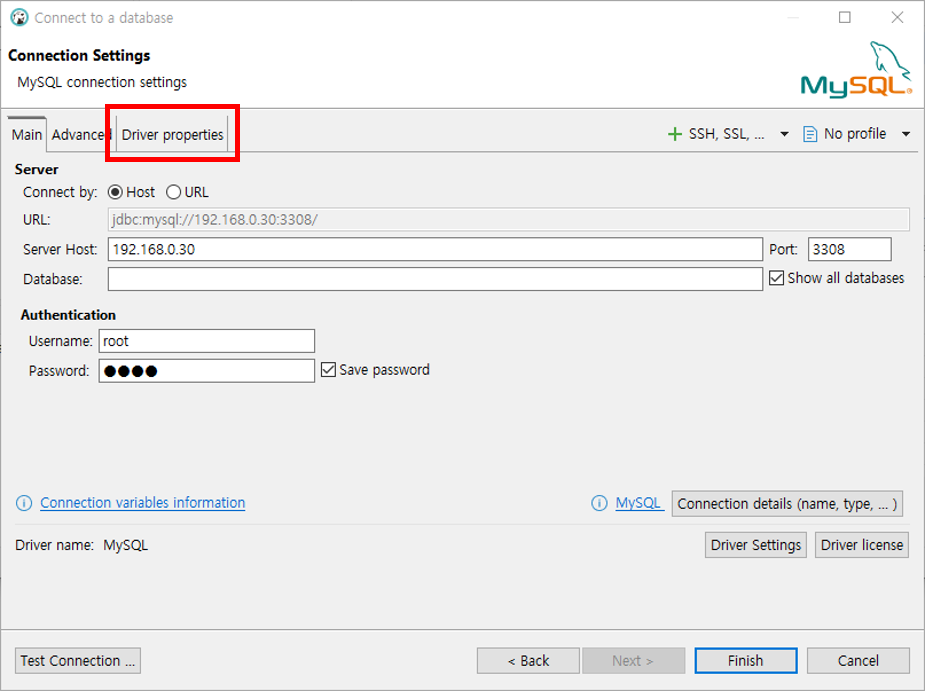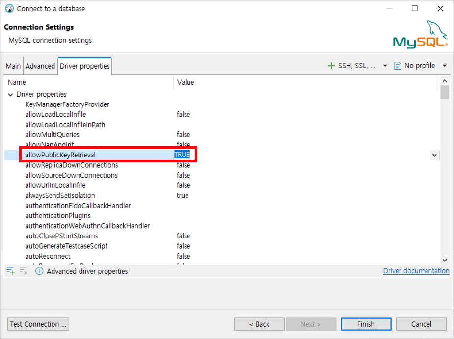 jdbc:mysql://localhost:3308/dbname?allowPublicKeyRetrieval=true&useSSL=false